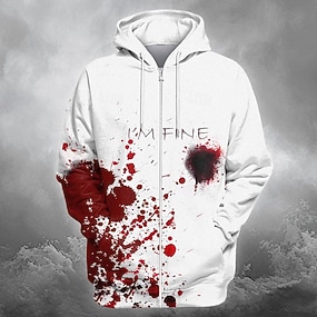 בגדי ריקוד גברים התזת דם הדפסים גרפיים ידיים קפוצ'ון קפוצ'ונים טרנינג יומי קלסי שרוול ארוך עם קפוצ'ון ליל כל הקדושים חגים ליציאה אודם פול דפוס קיץ & אביב מְעַצֵב