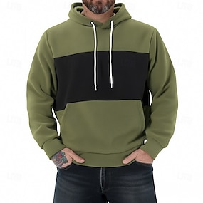 בגדי ריקוד גברים קפוצ'ון שחור ירוק צבא אודם בז' עם קפוצ'ון קולור בלוק שרוך טלאים כיס ספורט וחוץ יומי חגים פוליאסטר סגנון רחוב בסיסי יום יומי סתיו חורף ביגוד קפוצ'ונים חולצות טריקו