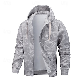 בגדי ריקוד גברים קפוצ'ון קפוצ'ון רוכסן מלא אפור בהיר עם קפוצ'ון אחיד צבע הסוואה לרכוס כיס ספורט וחוץ קזו'אל יומי סגנון רחוב מגניב בגדי ספורט קיץ & אביב ביגוד קפוצ'ונים חולצות טריקו