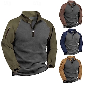 בגדי ריקוד גברים טרנינג סווטשירט עם רבע רוכסן ירוק צבא כחול נייבי חום חאקי חצי רוכסן קולור בלוק טלאים ספורט וחוץ יומי חגים קורדורוי סגנון רחוב בסיסי יום יומי סתיו חורף ביגוד קפוצ'ונים חולצות טריקו