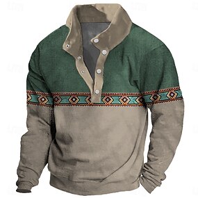 בגדי ריקוד גברים גראפי קולור בלוק קאובוי סווטשירטים טרנינג שרוול ארוך טרֵנִינג עומד יומי יום יומי רטרו וינטג' הדפסת תלת מימד חופשה ספורט חוץ חגים דפוס קיץ & אביב