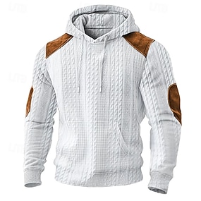 בגדי ריקוד גברים סרוג קפוצ'ון סווטשירט קפוצ'ון בסוודרים לבן עם קפוצ'ון אחיד טלאים בלוק צבע מרקם ספורט וחוץ קזו'אל יומי סגנון רחוב מגניב בגדי ספורט סתיו קיץ & אביב ביגוד קפוצ'ונים חולצות טריקו