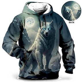 בגדי ריקוד גברים חיה זאב הדפסים גרפיים קפוצ'ון קפוצ'ונים טרנינג יומי קלסי שרוול ארוך עם קפוצ'ון חגים ליציאה לבוש רחוב פול חום דפוס קיץ & אביב מְעַצֵב