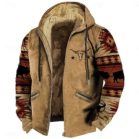בגדי ריקוד גברים גראפי צבי קפוצ'ון קפוצ'ונים טרנינג אופנתי יומי שרוול ארוך עם קפוצ'ון חופשה ספורט חוץ חגים פול חום דפוס כיס קדמי קיץ & אביב מְעַצֵב
