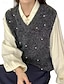 בגדי ריקוד נשים סוודר אפוד סוודר סגנון רחוב יום יומי צבע אחיד צווארון V פאייטים סרוג ללא שרוולים חולצות רגילות לִסְרוֹג חגים ליציאה סוף שבוע שחור בז' סתיו חורף