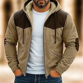 בגדי ריקוד גברים קפוצ'ון קפוצ'ון רוכסן מלא קפוצ'ון פליס קפוצ'ון עם בטנת פליז פול חום תלתן חאקי עם קפוצ'ון אחיד טלאים בלוק צבע ספורט וחוץ קזו'אל יומי סגנון רחוב מגניב בגדי ספורט סתיו חורף ביגוד