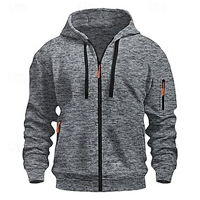 בגדי ריקוד גברים קפוצ'ון קפוצ'ון רוכסן מלא שחור חאקי אפור עם קפוצ'ון אחיד רוכסן כיס ספורט וחוץ יומי חגים פוליאסטר סגנון רחוב בסיסי יום יומי אביב סתיו ביגוד קפוצ'ונים חולצות טריקו