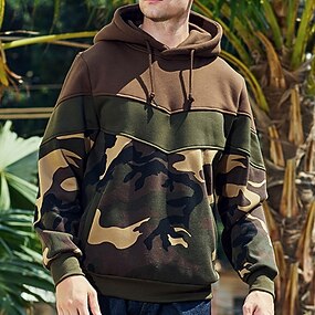 בגדי ריקוד גברים קפוצ'ון ירוק צבא קפה עם קפוצ'ון קולור בלוק צבע הסוואה טלאים כיס ספורט וחוץ יומי חגים סגנון רחוב בסיסי יום יומי קיץ & אביב ביגוד קפוצ'ונים חולצות טריקו