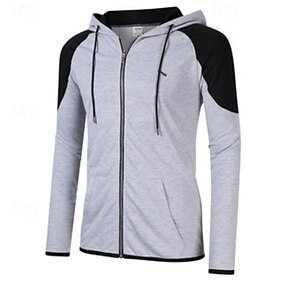 בגדי ריקוד גברים קפוצ'ון קפוצ'ון רוכסן מלא שחור אודם אפור עם קפוצ'ון אחיד טלאים בלוק צבע ספורט וחוץ קזו'אל יומי סגנון רחוב מגניב בגדי ספורט קיץ & אביב ביגוד קפוצ'ונים חולצות טריקו