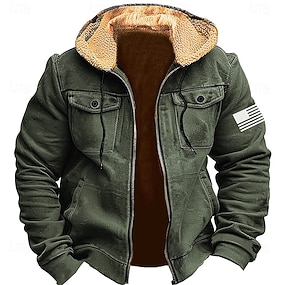 בגדי ריקוד גברים קאובוי פליז קפוצ'ונים אופנתי מגניב יומי רטרו וינטג' שרוול ארוך עם קפוצ'ון חגים ציד חום תלתן חאקי רוכסן כיס סתיו חורף מְעַצֵב S M L XL XXL XXXL