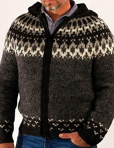 זכר סוודר קרדיגן קרדיגן ז'קט סוודר שמנמן לִסְרוֹג רגיל אי פייר סרוג עם קפוצ'ון לבוש יומיומי ביגוד שרוולי ראגלן סתיו חורף קפה M L XL