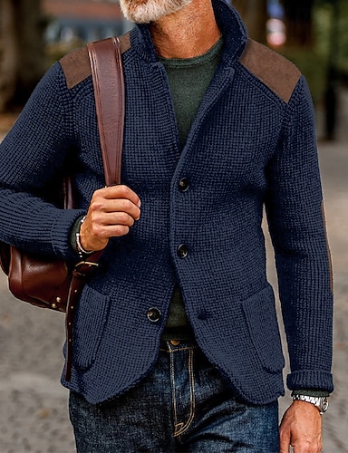 בגדי ריקוד גברים סוודר קרדיגן סוודר קצוץ סוודר סרוג מצולע לִסְרוֹג חוּלצָה כיס אחיד צווארון צעיף (שאל) אופנתי קלסי לבוש יומיומי פגישה (דייט) ביגוד סתיו חורף שחור כחול נייבי S M L