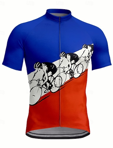 בגדי ריקוד גברים חולצת ג'רסי לרכיבה גראפי גיאומטרי שרוולים קצרים אופנייים ג'רזי צמרות עם 3 כיסים אחוריים עמידות UV ייבוש מהיר רוכסן קדמי רצועות מחזירי אור ספורט כחול ביגוד