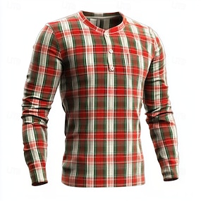 בגדי ריקוד גברים חג המולד משובץ חולצת הנלי שרוול ארוך אופנתי סגנון חמוד יומי קזו'אל חגים ליציאה סתיו קיץ & אביב אדום הנלי חולצת טריקו של הנלי