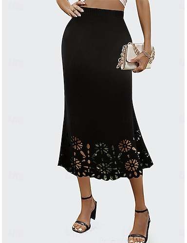 בגדי ריקוד נשים חצאית תחרה אלגנטית אופנתי יום יומי מידי גיזרה בינונית (אמצע) חצאיות אחיד תחרה חור סטרצ'י (נמתח) יומי חופשה שחור יין ירוק כהה חאקי קיץ ספנדקס פוליאסטר