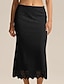בגדי ריקוד נשים חצאיות סאטן אלגנטית וינטאג' אופנתי יום יומי מידי מותניים גבוהים חצאיות אחיד תחרה טלאים חור קשיח יומי משרד / קריירה שחור קיץ ספנדקס סאטן