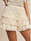 בגדי ריקוד נשים אופנתי סקסי יום יומי מיני מותניים גבוהים חצאיות אחיד Ruched תחרה שכבות מרובות סטרצ'י (נמתח) יומי רחוב אחלמה שחור לבן צהוב קיץ פוליאסטר