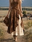 בגדי ריקוד נשים חצאית לחופשה וינטאג' אופנתי יום יומי מקסי מותניים גבוהים חצאיות אחיד תחרה טלאים קשיח יומי רחוב חום אביב פוליאסטר