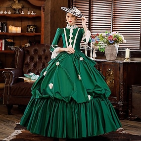 וינטאג' רוקוקו רנסנס מקסי שמלות נורמלי יוליה נסיכות כלה קפלים מבולבל נסיכה צווארון עגול תחפושות בגדי ריקוד נשים האלווין (ליל כל הקדושים) קרנבל נשף מסכות הצגה מפלגה ליל כל הקדושים מבוגרים כל העונות