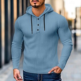 בגדי ריקוד גברים חולצת שרירים טי סריג צלעות טופ טי חולצה ארוכת שרוולים שרוול ארוך עם קפוצ'ון הנלי קיץ & אביב צבע אחיד יומי יום יומי סגנון רחוב עם קפוצ'ון בָּחוּץ רחוב קזו'אל כחול בהיר שחור לבן