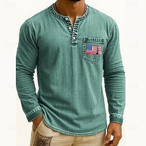 בגדי ריקוד גברים חולצת הנלי טי שירטס טופ טי חולצה ארוכת שרוולים שרוול ארוך הנלי סתיו חורף דגל רטרו אופנתי מעצב אופנה וינטאג' חופשה רחוב ליציאה חום כהה נייבי שחור חולצה עליונה לגברים