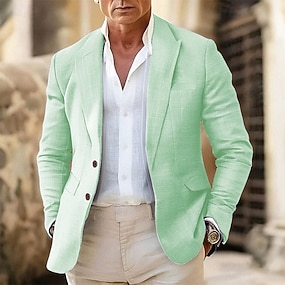 בגדי ריקוד גברים בלייזר פשתן בלייזר עֵסֶק מסיבת קוקטייל מסיבת החתונה אופנתי יום יומי אביב סתיו פשתן צבע אחיד כיס כפתורים נוח חזה יחיד בְּלֵיזֶר אפור כהה ירוק בהיר ורוד מסמיק סגול