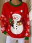 בגדי ריקוד נשים סוודר אופנתי יום יומי גראפי איש שלג פתיתי שלג צווארון עגול קצר סרוג שרוול ארוך חולצות רגילות לִסְרוֹג עבודה אודם סתיו חורף
