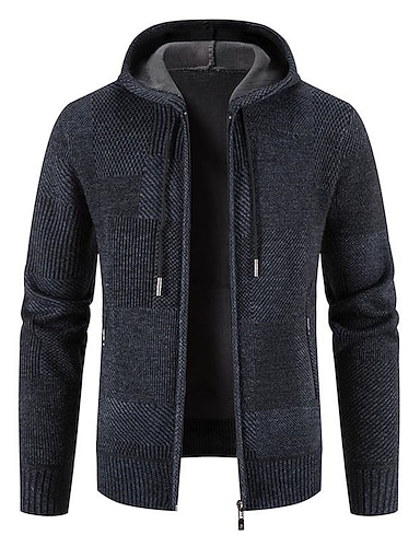 בגדי ריקוד גברים סוודר קרדיגן סוודר קצוץ סוודר רוכסן סוודר סרוג מצולע לִסְרוֹג חולצות רגילות כיס אחיד עם קפוצ'ון אופנתי קלסי חופשה לבוש יומיומי ביגוד סתיו חורף שחור אפור כהה S M L