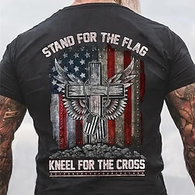 חולצת טי מFunny לגברים עם עיצוב צלב דגל פטריוטי נוצרי | עמד ודגל כרע בפני הצלב