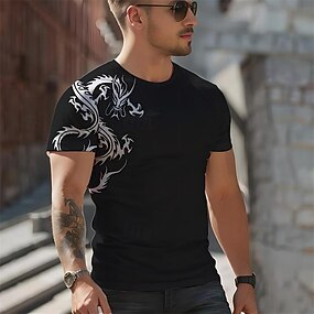 בגדי ריקוד גברים גראפי דרקון חולצה קצרה טופ טי שרוולים קצרים חולצה קצרה הדפסת תלת מימד צווארון עגול קצר חולצה יומי מעצב יום יומי ספורט חוץ חגים ליציאה שחור בורגנדי אפור אביב קיץ ביגוד S M L XL 2XL 3XL