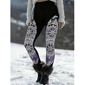 בגדי ריקוד נשים ויקינג חותלות טייץ נעים חופשה וינטאג' סגנון אתני באורך מלא מותניים גבוהים גראפי מדפיס נוח סטרצ'י (נמתח) קזו'אל יומי חופשה תלתן אביב סתיו גזרה צרה