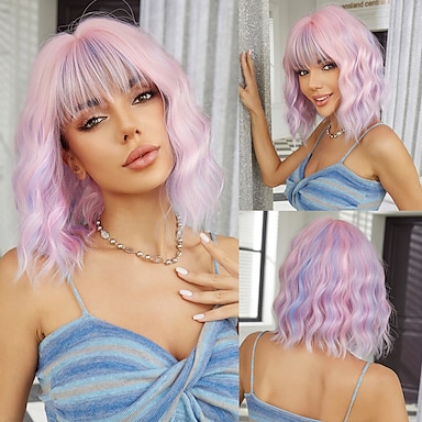 פאות סינתטיות מדים תחפושות קריירה נסיכות מתולתל גלי חלק אמצעי תספורת שכבות הוכן באמצעות מכונה פאה 14 אינץ' ורוד סגול שיער סינטטי בגדי ריקוד נשים קוספליי מפלגה אופנתי צבע מעורב