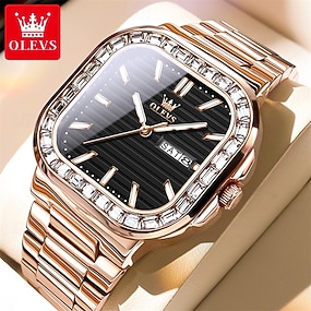 OLEVS נשים קווארץ אופנתי שעונים יום יומיים שעון יד זורח עמיד במים קישוט מתכת אל חלד שעון
