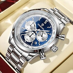 שעון קוורץ לגברים BINBOND שעון יוקרתי עם חוגה גדולה אופנה עסקית זוהר עמיד במים רצועת עור נירוסטה B505