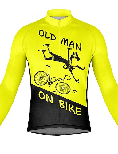 בגדי ריקוד גברים חולצת ג'רסי לרכיבה גראפי מצחיק שרוול ארוך אופנייים ג'רזי צמרות עם 3 כיסים אחוריים רכיבת הרים רכיבת כביש ייבוש מהיר רצועות מחזירי אור כיס אחורי פתילת לחות ספורט שחור לבן צהוב ביגוד