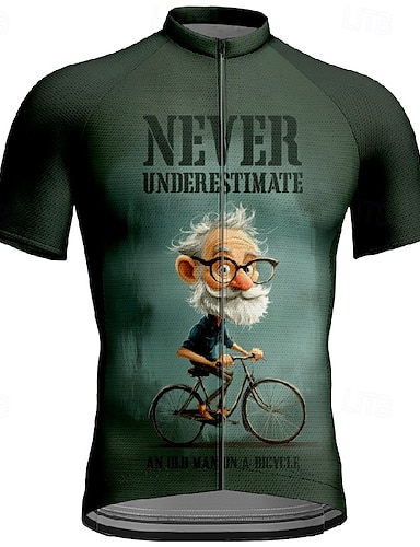 בגדי ריקוד גברים חולצת ג'רסי לרכיבה גראפי גיאומטרי מכתב ומספר שרוולים קצרים אופנייים ג'רזי צמרות עם 3 כיסים אחוריים עמידות UV ייבוש מהיר רוכסן קדמי רצועות מחזירי אור ספורט ירוק ביגוד