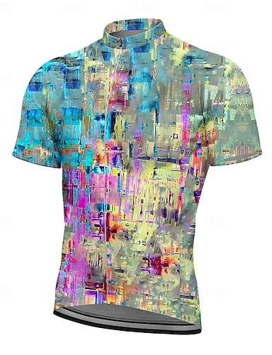 בגדי ריקוד גברים חולצת ג'רסי לרכיבה גראפי גיאומטרי שרוולים קצרים אופנייים טי טי ג'רזי צמרות עם 3 כיסים אחוריים עמידות UV ייבוש מהיר רוכסן קדמי רצועות מחזירי אור ספורט כחול סקיי ביגוד