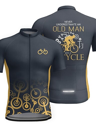 בגדי ריקוד גברים חולצת ג'רסי לרכיבה גיאומטרי גלגל שיניים מצחיק שרוולים קצרים אופנייים ג'רזי צמרות עם 3 כיסים אחוריים רכיבת הרים רכיבת כביש ייבוש מהיר רצועות מחזירי אור כיס אחורי פתילת לחות ספורט
