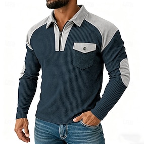 בגדי ריקוד גברים חולצה קצרה טי וופל סריג טופ טי חולצה ארוכת שרוולים שרוול ארוך רבע מיקוד סתיו קיץ & אביב קולור בלוק עם טקסטורה וינטאג' אופנתי יום יומי טלאים רוכסן רבע מיקוד חופשה רחוב קזו'אל