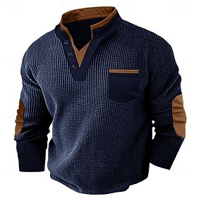 בגדי ריקוד גברים חולצה קצרה חולצת הנלי טי וופל סריג טופ טי חולצה ארוכת שרוולים קולור בלוק הנלי רחוב חופשה שרוול ארוך טלאים ביגוד פוליאסטר אופנתי מעצב בסיסי