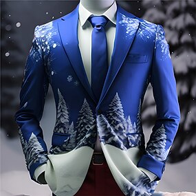חג המולד לגברים הדפס סצנת חג המולד בלייזרים מעיל עסקי עץ בלייזר חם נושם לבוש נוח לעבודה לעבודה הדפסת כפתורים הדפסת כפתור רב כיסים בהתאמה רגילה סתיו & הנחה בחורף ארוכה