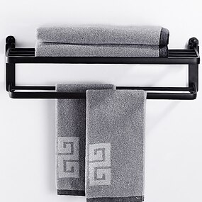 וו בר מגבת חלוק רחצה מדף מתקפל רב שכבתי עיצוב חדש עכשווי מודרני אלומיניום מתכת 1 יחידה - חדר אמבטיה בר 4 מגבות צמוד על הקיר