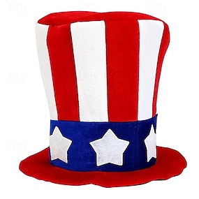 בגדי ריקוד גברים כובע מסיבות מגבעת כּוֹבַע צִילִינדר אודם פּוֹלִיאֶסטֶר אופנתי יום יומי יומי פֶסטִיבָל דגל ארה"ב האמריקני מתכווננת קרם הגנה נושם