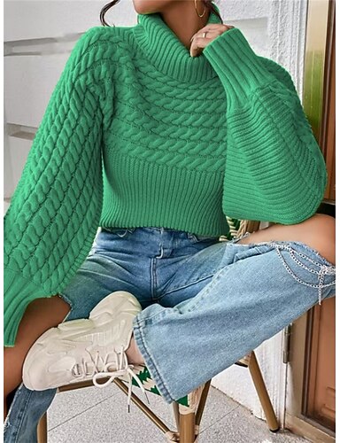 בגדי ריקוד נשים סוודר יום יומי רך צבע אחיד מצולע גולף סרוג שרוול ארוך חולצות רגילות לִסְרוֹג בָּחוּץ יומי סוף שבוע שחור אודם סתיו חורף