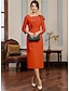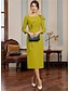 מעטפת עמוד באורך הקרסול השמלה המפלגה שמלת קוקטייל שמלת אורח לחתונה שמלה לאם הכלה שרוול ארוך צווארון מרובע אלגנטית מינימליסטי רשמי אורחת חתונה בד מתיחה עם אסוף חרוזים צבע אחיד