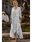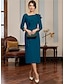 שני חלקים מעטפת עמוד באורך הברך שמלת אורח לחתונה שמלה לאם הכלה שרוול 4\3 עם תכשיטים אלגנטית רשמי אורחת חתונה כנסייה שיפון תחרה עטיפה כלולה שמלות ז'קט עם חרוזים אפליקציות