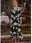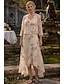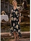 גזרת A עד הריצפה באורך הקרסול שמלת חולצה שמלה רשמית שמלה לאם הכלה שרוול 4\3 צווארון חולצה אלגנטית וינטאג' עטיפה כלולה רשמי אורגנזה ג'אקרד עם הדפס פרחוני פפיון(ים)