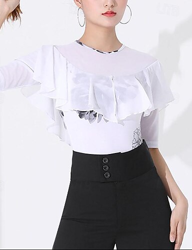 ריקוד לטיני ריקודים סלוניים / סרבל תינוקותבגד גוף הדפסה קפלים שחבור בגדי ריקוד נשים הצגה הדרכה חצי שרוול גבוה פוליאסטר