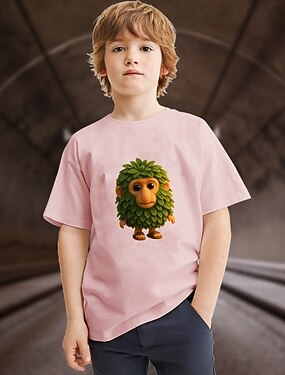חולצת טריקו תלת-ממדית לבנים עם דמות מצוירת "טונג טונג סאחור" שרוולים קצרים קיץ אביב אופנתי בסיסי ילדים 4-12 שנים צווארון עגול חוץ קז'ואל יומיומי גזרה רגילה