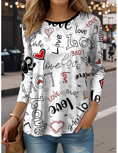 חולצת טריקו לנשים עם שרוולים ארוכים צוואר צוות חולצת טוניק קזואל הדפס טופס רגיל יומי שחור כחול כתום אביב סתיו לפני סתיו
